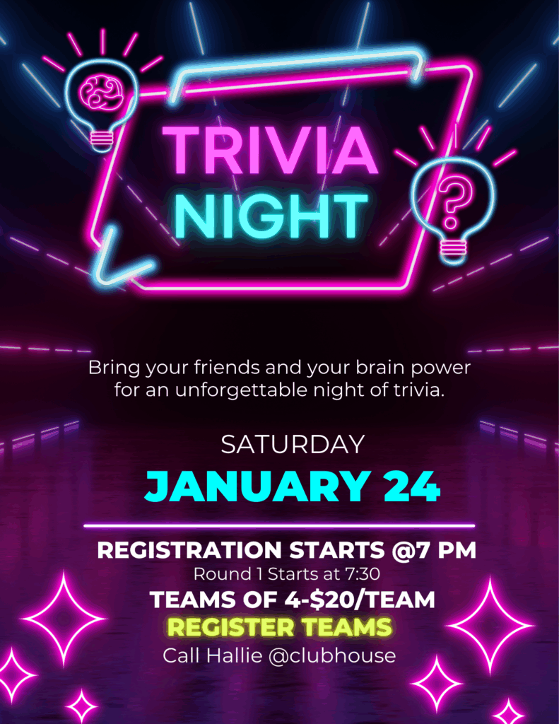 Reminder: Dining minimums go up to $50 starting this month. While most members hit this mark regularly (THANK YOU!), you still have an opportunity through January 15th to keep it at $40 for 2026. Make sure your credit card is active (not expired), and is linked for auto-pay. This is something that Hallie has to confirm, so a simple text or call can get you set up. January 15th is a hard deadline for this, so please don’t delay!